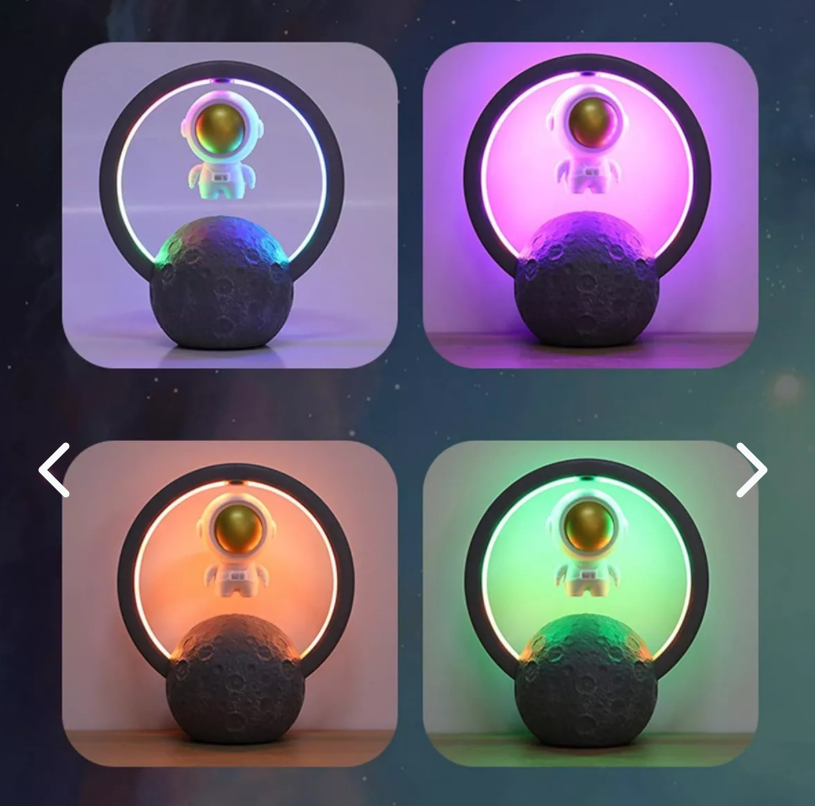 Transforma tu habitación en una experiencia espacial con la Lámpara de Escritorio Astronauta RGB con Altavoz Bluetooth. Diseñada para los amantes del diseño moderno y la tecnología, combina luz ambiental multicolor con un potente altavoz inalámbrico, creando una atmósfera única para estudiar, trabajar o relajarte.