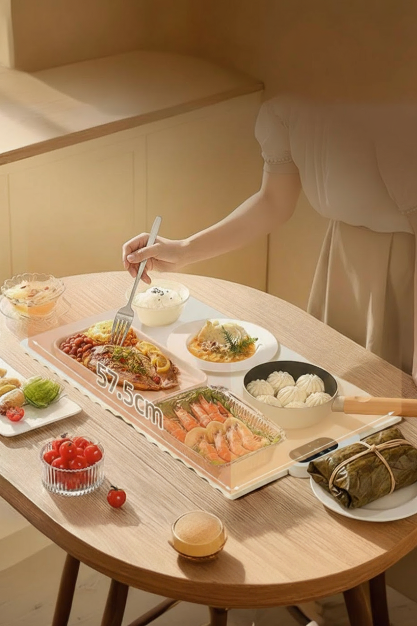 Mantén tu comida siempre caliente con este tapete eléctrico de silicona. Plegable, fácil de limpiar y perfecto para el hogar o viajes.