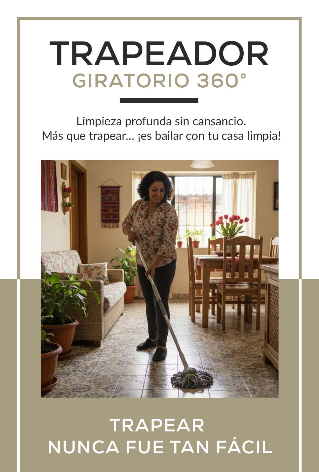En un mundo donde el tiempo vale oro, este trapeador premium convierte la limpieza en una tarea rápida, práctica y hasta satisfactoria.